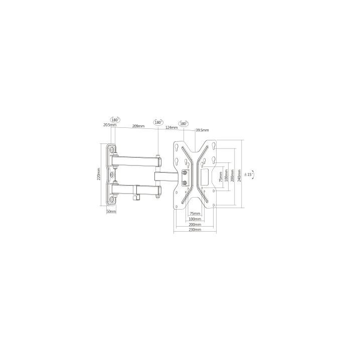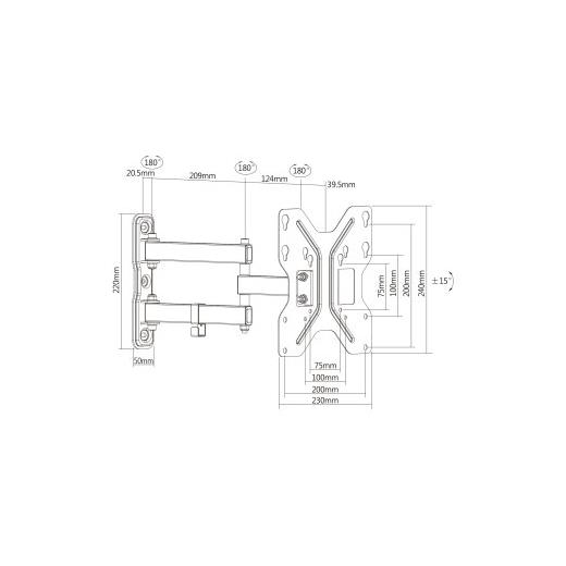 107 cm'ye (42") kadar 3D evrensel TV/monitör montajı, 15ø eğim ve 180ø dönüş, maks. 30 kg, VESA 200x200